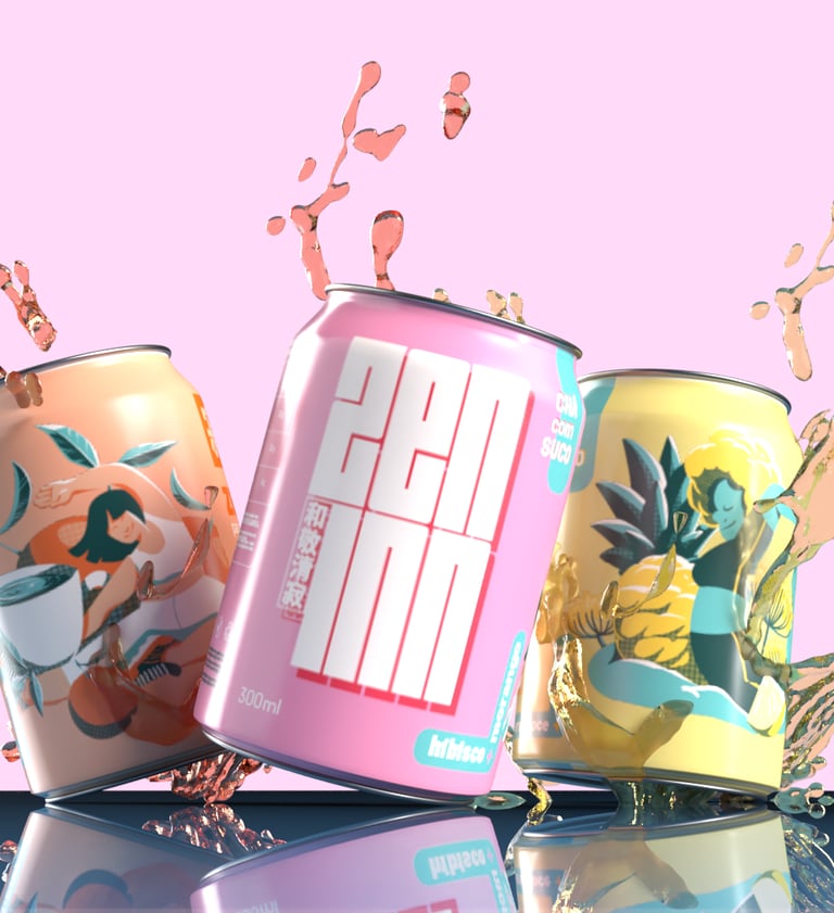 O projeto de design de embalagens desenvolvido para o curso da Ebac explorou três versões distintas, cada uma representando um sabor: a combinação de laranja com chá verde, a união de hibisco com morango e a mistura de abacaxi com erva doce. A pesquisa para este projeto convergiu para o conceito 'Wa Kei Sei Jaku', os pilares filosóficos da cerimônia do chá japonesa (Chado), profundamente enraizada no Taoísmo e no Zen Budismo. Estes princípios representam, respectivamente, Harmonia (Wa), Respeito (Kei), Pureza (Sei) e Tranquilidade (Jaku).